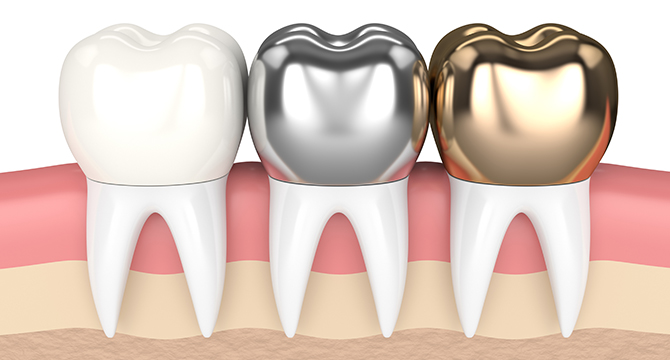 Crowns are used to fully cover a tooth that is weak or too decayed to be fully restored with a filling. This is generally done following a root canal treatment or when a large filling wears out. A weakened tooth is at risk of breaking or cracking, which is a serious matter and much more difficult to treat. Crowns ride over the weakened tooth, restoring strength and protecting the tooth from additional damage that can be caused by normal biting and chewing.
